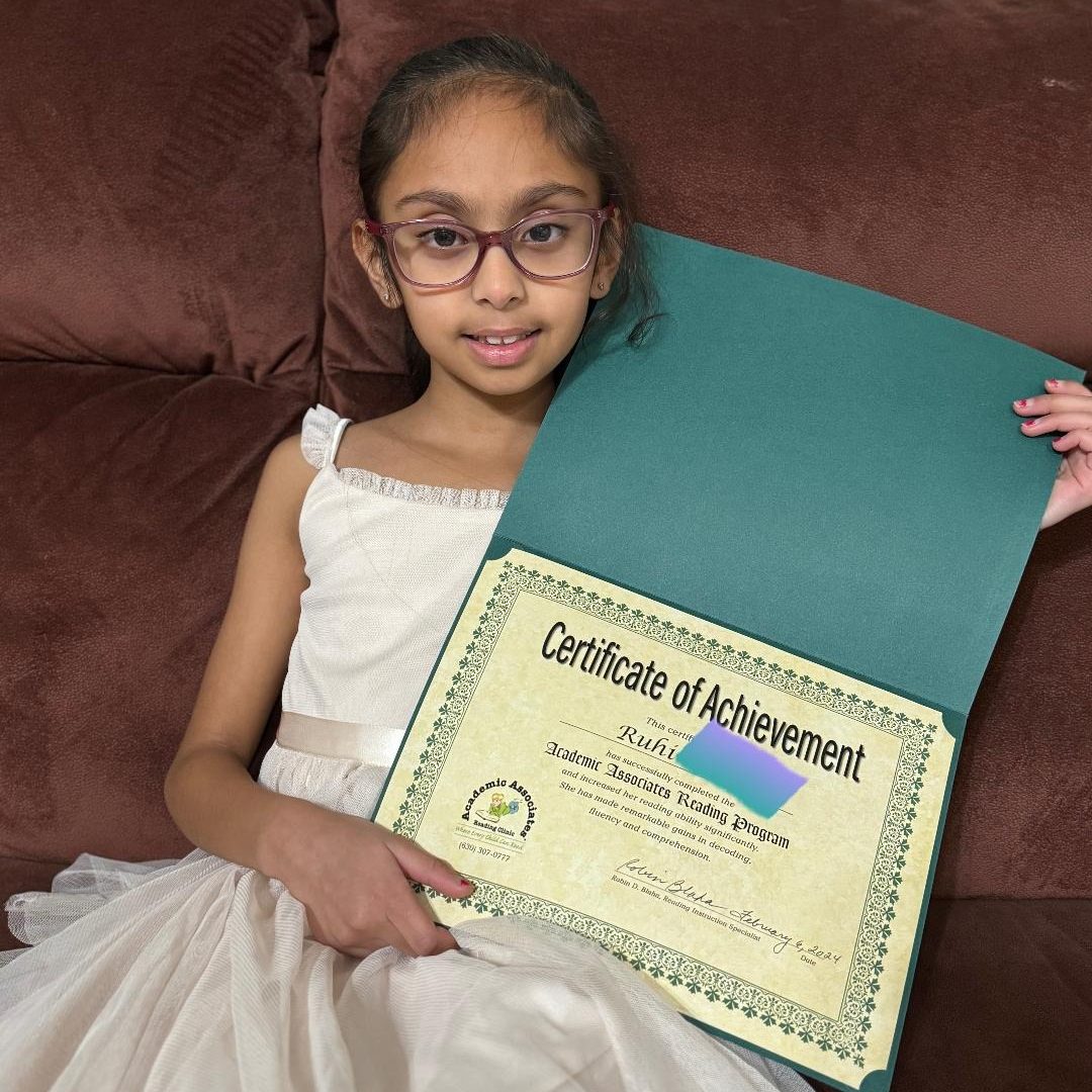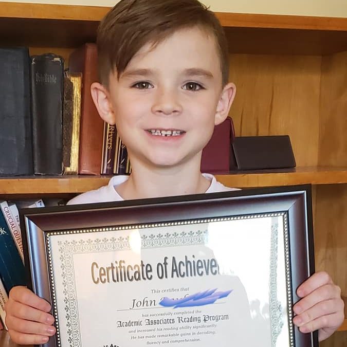 “This is a note stating how very pleased we are with the reading education that our son, Cory, received at Academic Associates. His reading skills are greatly improved, helping him in all areas of school and life. We are assured that he has the proper foundation for years of learning ahead. He loved this program and was sad when he graduated. I feel his speech, pronunciation, and vocabulary were also greatly enhanced, because he was released from his school speech therapy while enrolled in the reading program. I know the reading practice and lessons improved his speech in wonderful ways. … I highly recommend this program.”